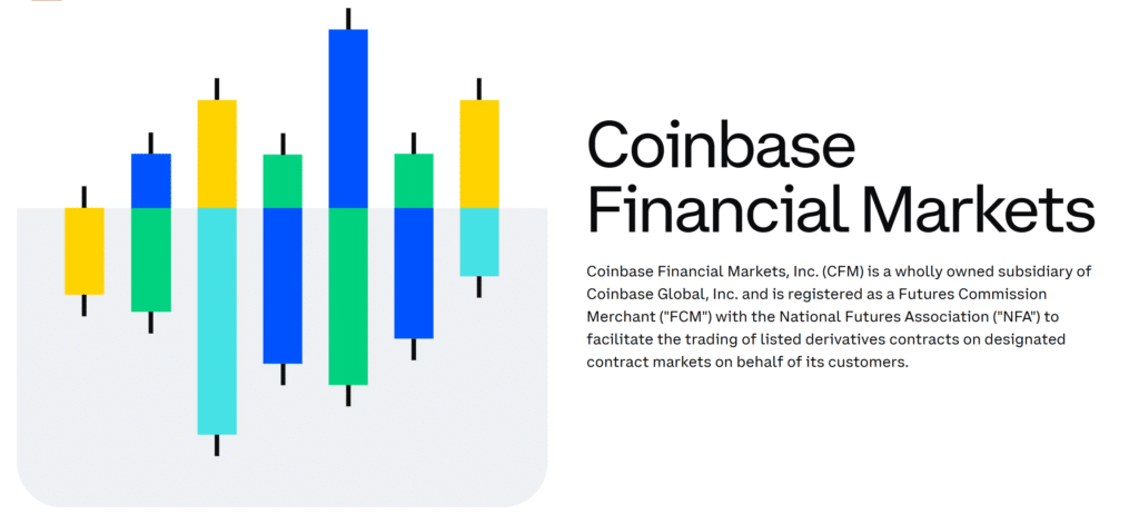 Coinbase Financial Markets CFM is a member company of Financial Markets and allows all eligible users to trade derivatives such as futures contracts in a controlled and compliant environment. It is regulated by U.S. regulators with financial and compliance requirements strict to protect its market participants.